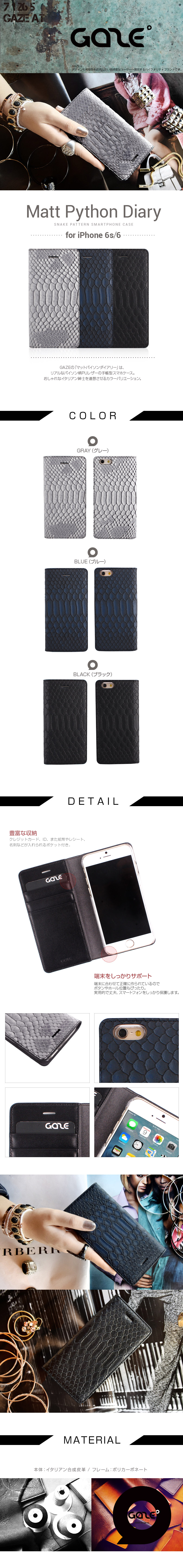 『GAZE Matt Python Diary』 iPhone6s 手帳型ケース / iPhone6 ケース 手帳 レザー
