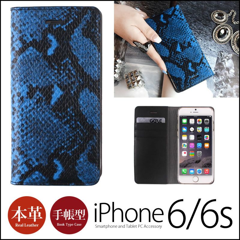 『GAZE Blue Python Diary』 iPhone6s/6 手帳型 本革 レザー ケース