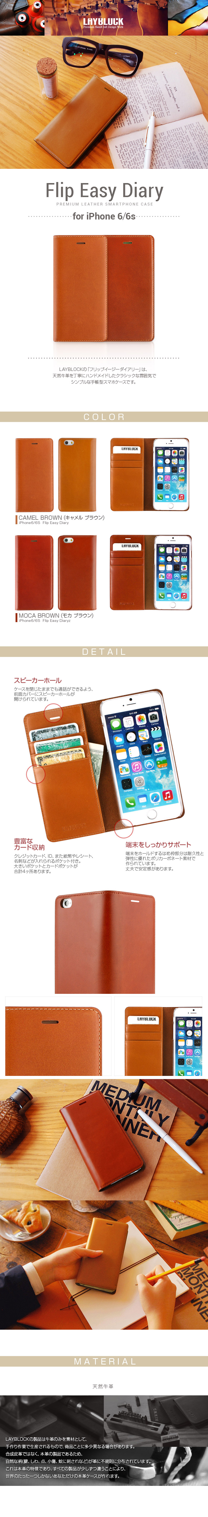 『LAYBLOCK Flip Easy Diary』 iPhone6s/6 手帳型 本革 レザー ケース