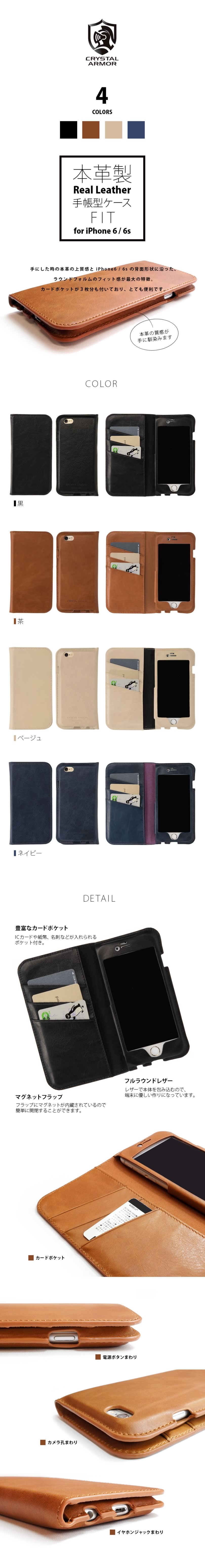 『CRYSTAL ARMOR クリスタルアーマー 本革製 手帳型ケース FIT』 iPhone6s / iPhone6 手帳型 本革 レザー ケース