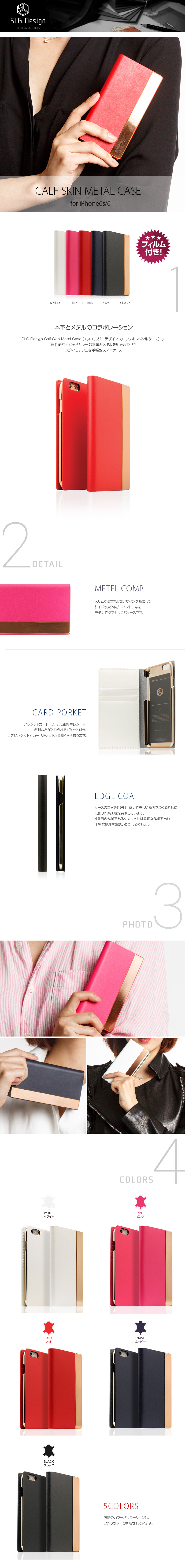 『SLG Calf Skin Metal Case』 iPhone6s/6 手帳型 本革 レザー ケース