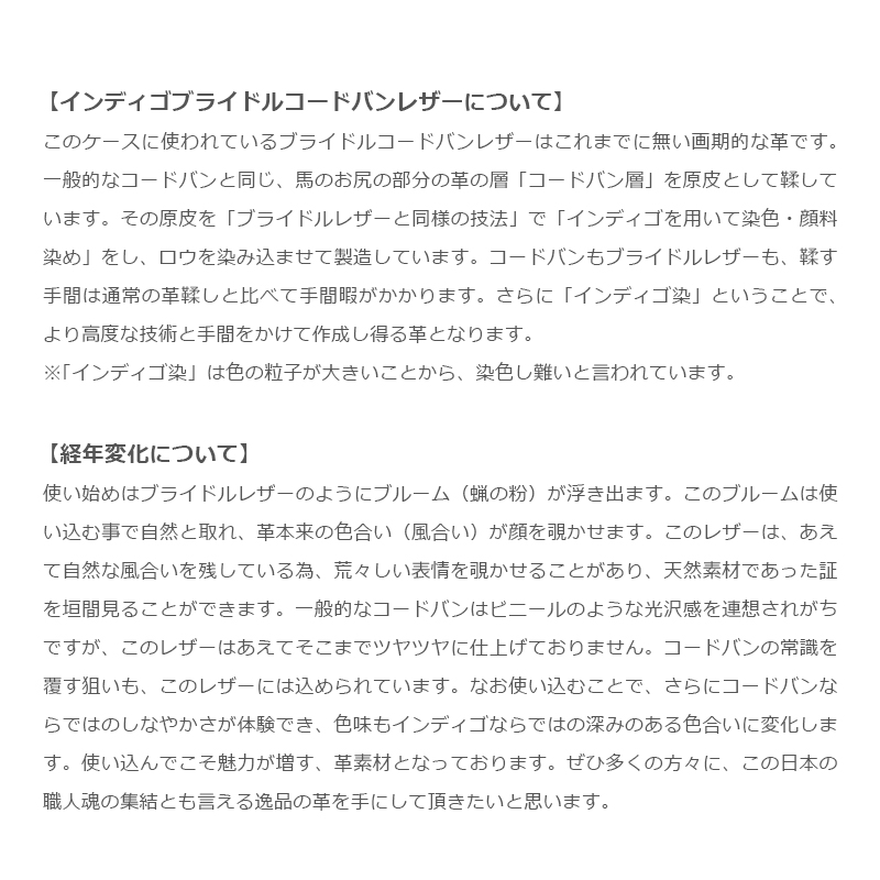 素材 表側:ブライドル コードバン 、内側:ブッテーロ レザー