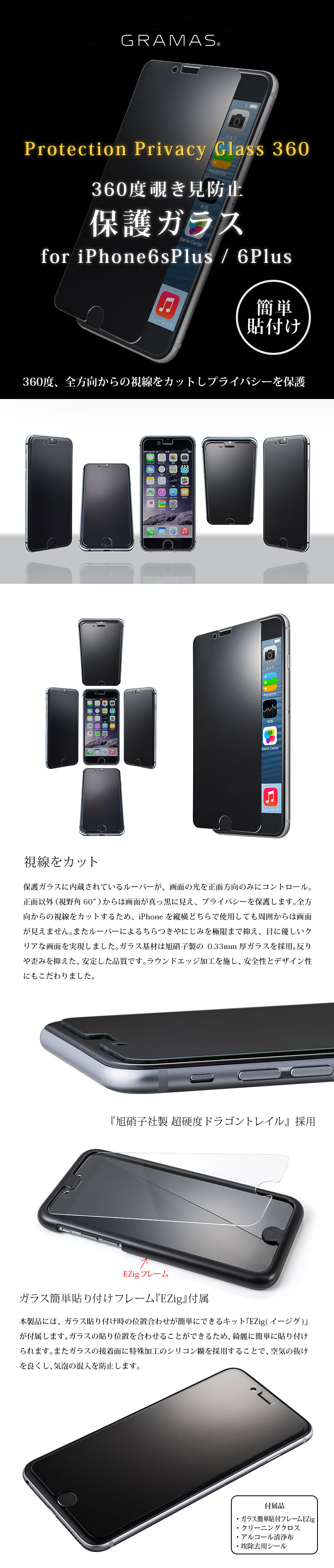『GRAMAS Protection Privacy Glass 360°』 iPhone6s Plus / iPhone6 Plus 360度 覗き見防止 旭硝子社製 液晶保護 ガラス