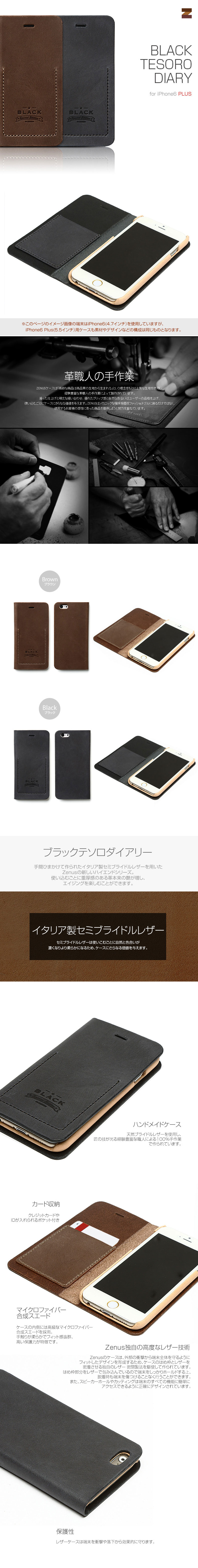 『ZENUS Black Tesoro Diary』 iPhone6s Plus / iPhone6 Plus 手帳型 本革 レザー ケース