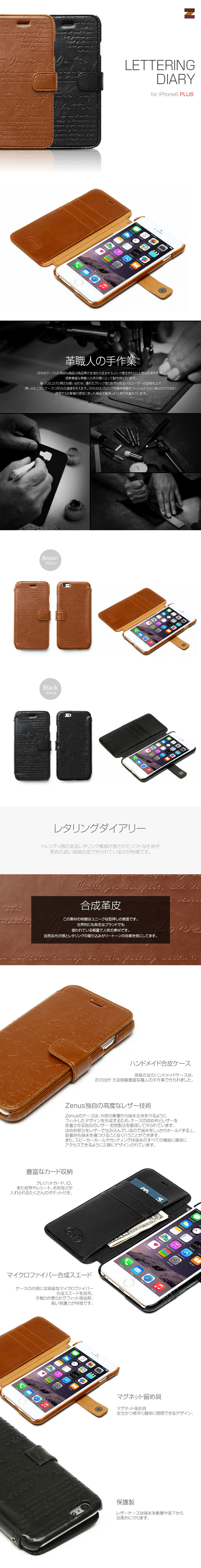 『ZENUS Lettering Diary』 iPhone6s Plus / iPhone6 Plus 手帳型 レザー ケース