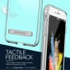■ケースは伏せて置いた時、やや高めに設計されているので、背面のカメラ部分、およびケース正面の液晶スクリーンを保護します。高い位置から落下しても、スクリーンへの直接の衝撃を防ぐことができます。
