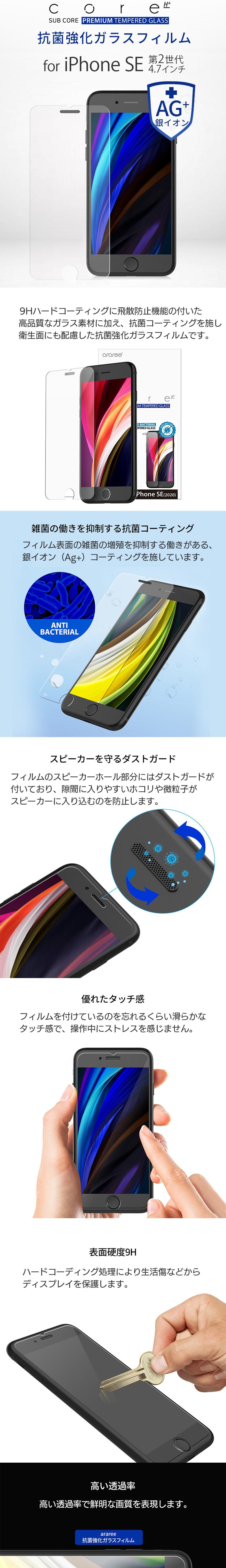 『araree SUB CORE 抗菌強化ガラスフィルム』 iPhoneSE 第3世代・第2世代 フィルム