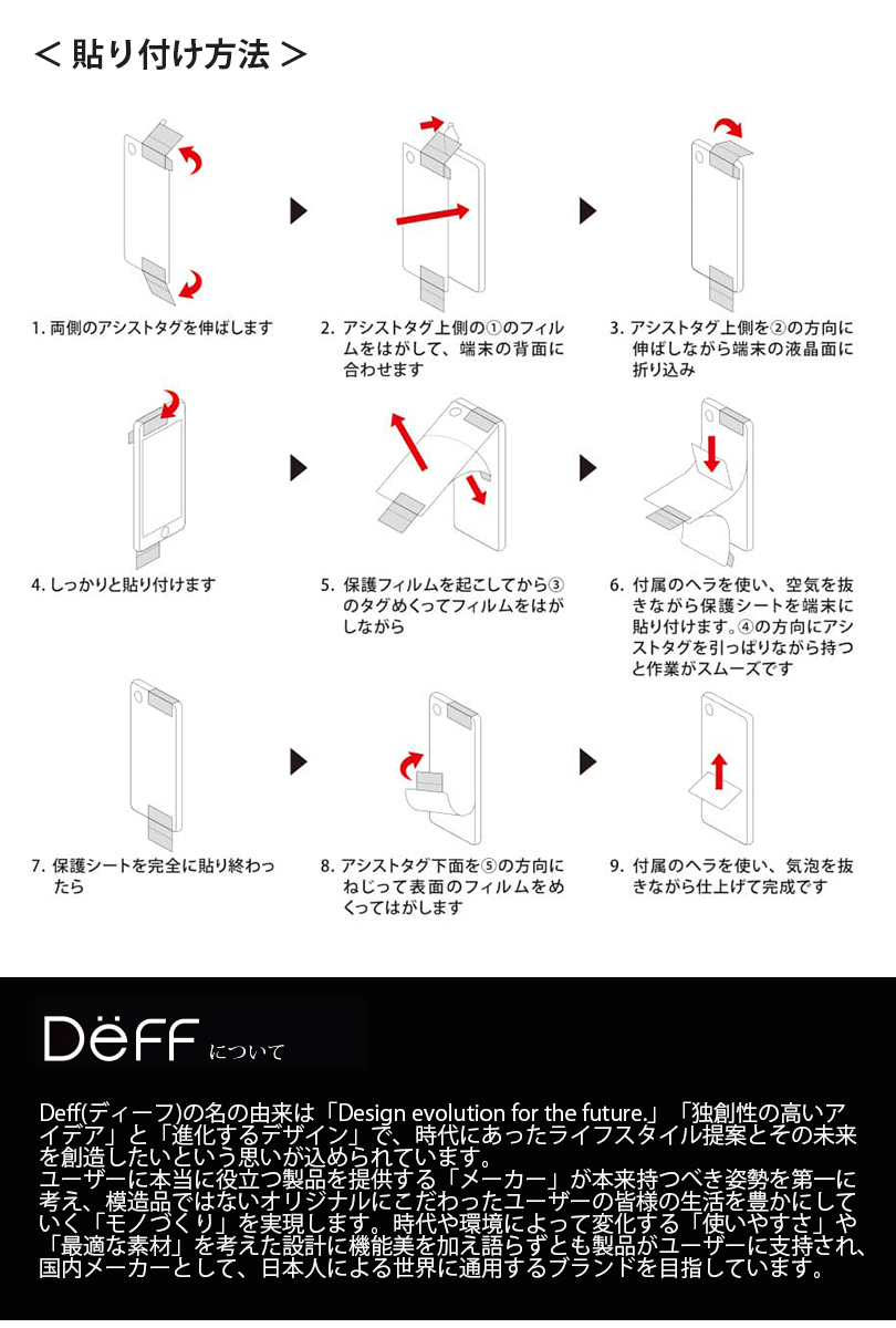 ■ 大きくラウンドをしたiPhoneの背面をカバーするために、Deffが考案したのが特殊素材のフィルムです。それに熱処理を加えて3D化しました。数多くの形状サンプルを使い最適な値を導き出し、最も自然な仕上がりになるように仕上げました。