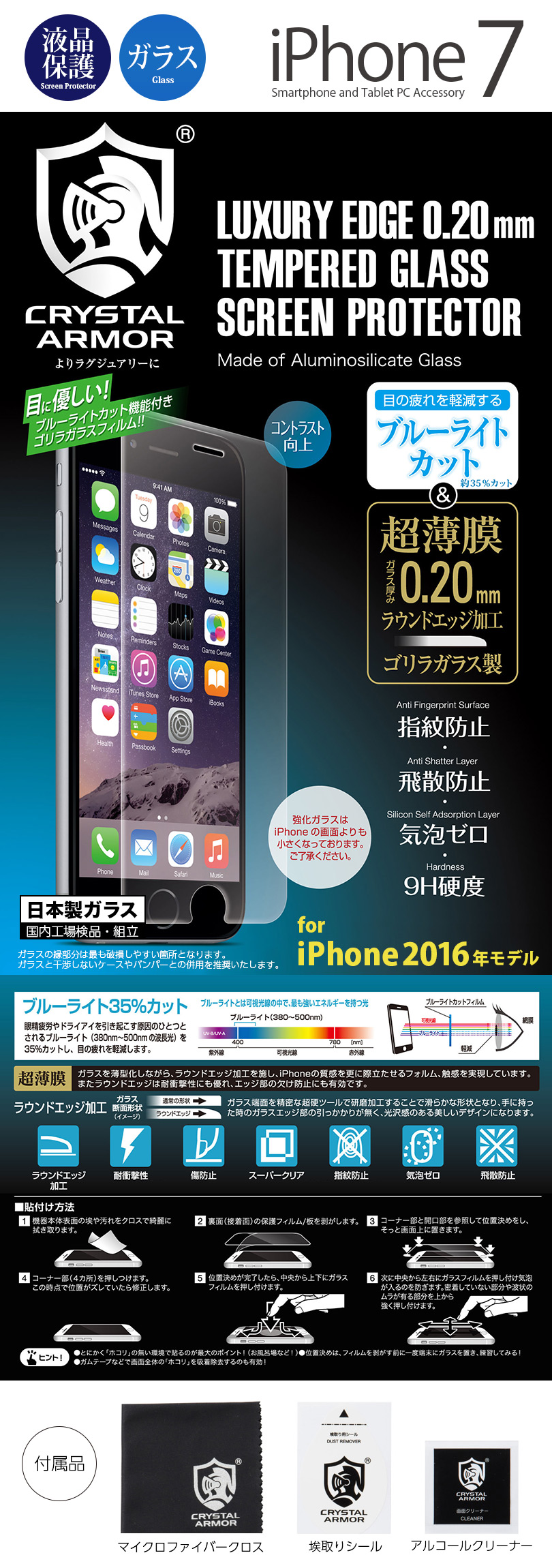『CRYSTAL ARMOR ブルーライトカット 強化ガラス 0.2mm』 iPhone SE (第2世代)/ iPhone8 / iPhone7 液晶保護フィルム 表面硬度9H ガラスフィルム