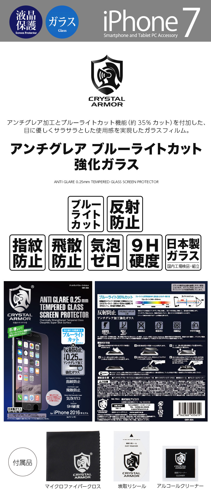 『CRYSTAL ARMOR アンチグレア ブルーライトカット 強化ガラス 0.25mm』 iPhone SE (第2世代)/ iPhone8 / iPhone7 液晶保護フィルム 表面硬度9H