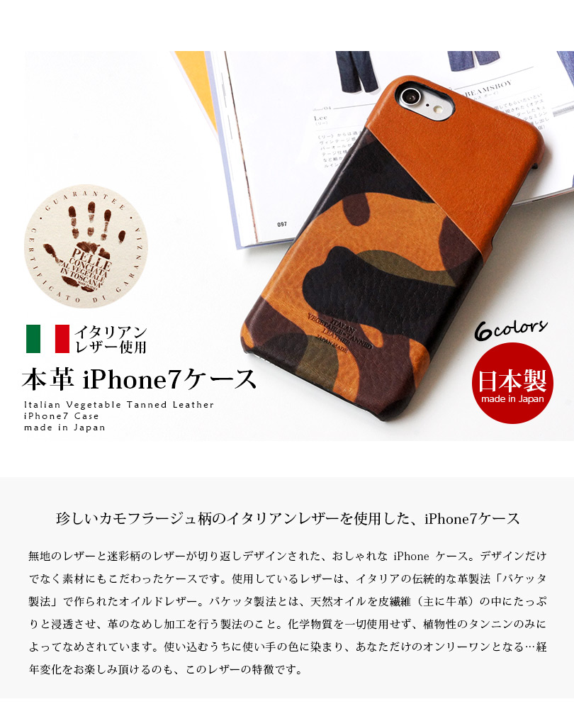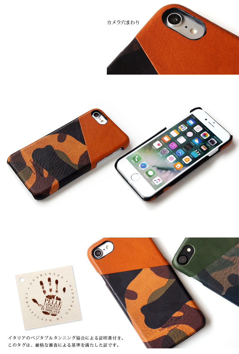 イタリアンレザー カモフラージュ柄 背面カバー for iPhoneSE 2022 case ( アイホンSE3 ケース ・ アイフォンSE3 ケース )・ iPhoneSE 2020 case ( アイホンSE2 ケース ・ アイフォンSE2 ケース )・ iPhone 8 case ( アイホン8ケース ・ アイフォン8ケース )・ iPhone 7 case ( アイホン7ケース ・ アイフォン7ケース )