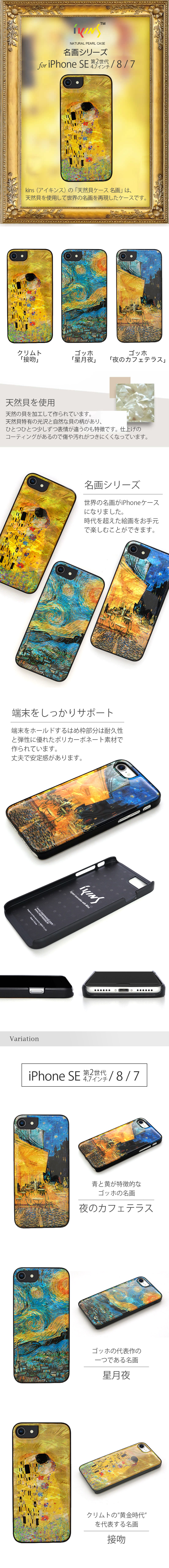 商品名 天然貝ケース 、接吻 、 星月夜 、夜のカフェテラス for iPhoneSE 2022 case ( アイホンSE3 ケース ・ アイフォンSE3 ケース )・ iPhoneSE 2020 case ( アイホンSE2 ケース ・ アイフォンSE2 ケース )・ iPhone 8 case ( アイホン8ケース ・ アイフォン8ケース )・ iPhone 7 case ( アイホン7ケース ・ アイフォン7ケース )