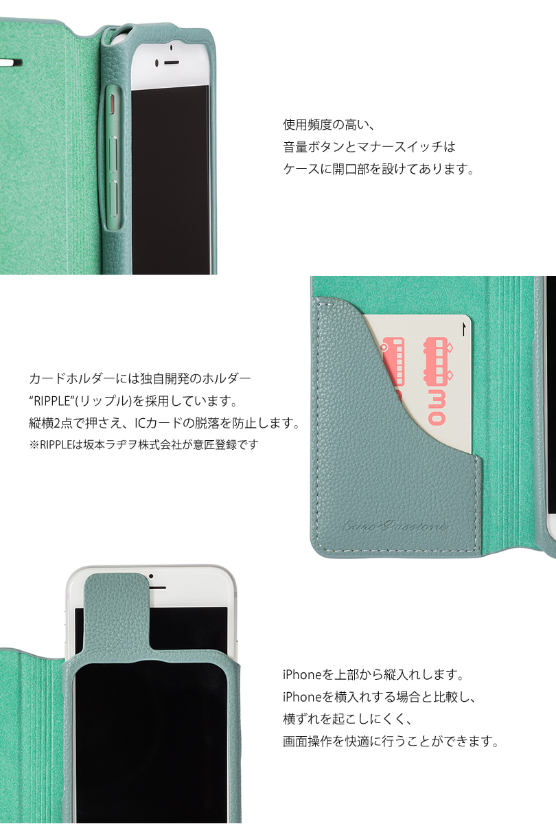 カードホルダーには独自開発のホルダー“RIPPLE”(リップル)を採用しています。縦横2点で押さえ、ICカードの脱落を防止します。