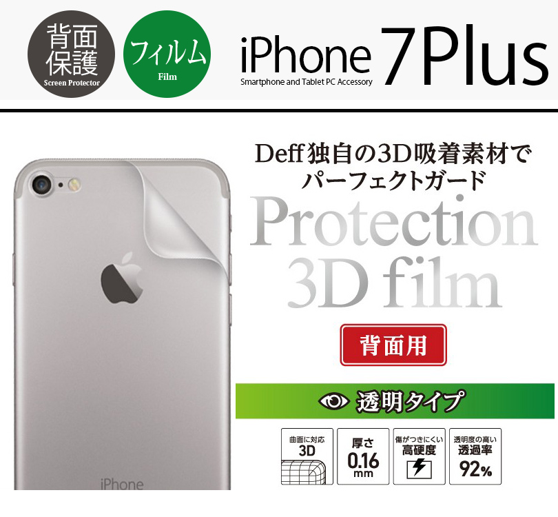 『Deff Protection 3D Film 0.16mm 背面フィルム』 iPhone8 Plus / iPhone7 Plus 保護フィルム おすすめ 背面 透明クリア