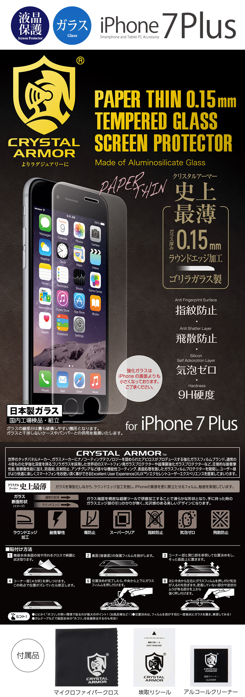 『CRYSTAL ARMOR PAPER THIN 0.15mm 強化ガラス』 iPhone8 Plus / iPhone7 Plus ガラスフィルム おすすめ