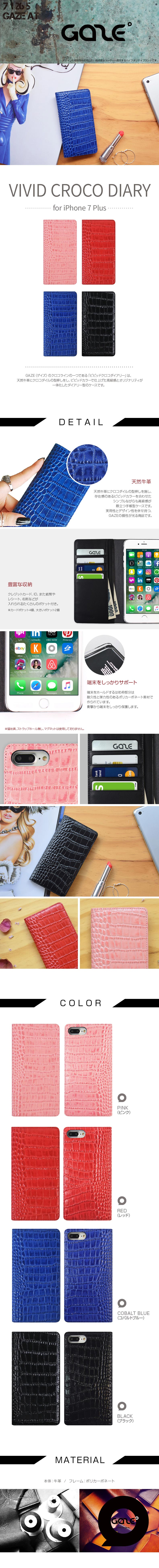 『Gaze Vivid Croco Diary』 iPhone8 Plus / iPhone7 Plus ケース 手帳型 本革 レザー