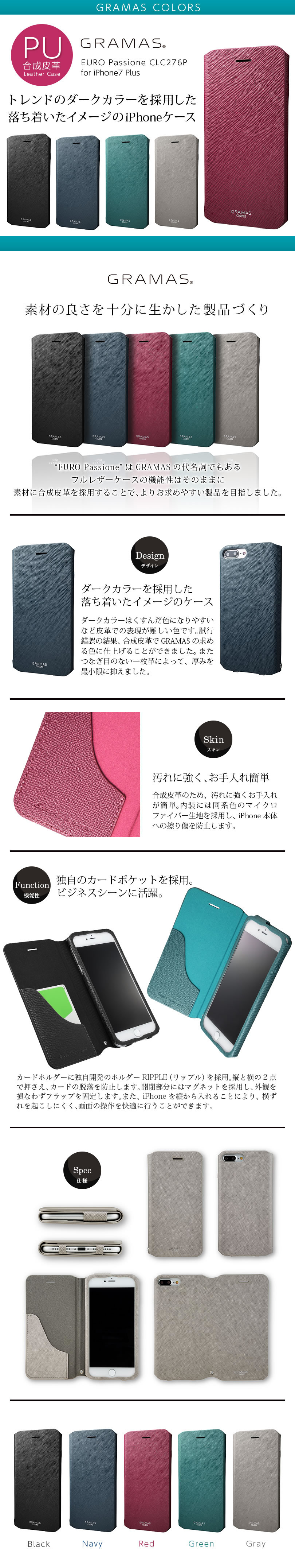 『GRAMAS COLORS EURO Passione Leather Case CLC276P』 iPhone8 Plus / iPhone7 Plus ケース 手帳型 レザー