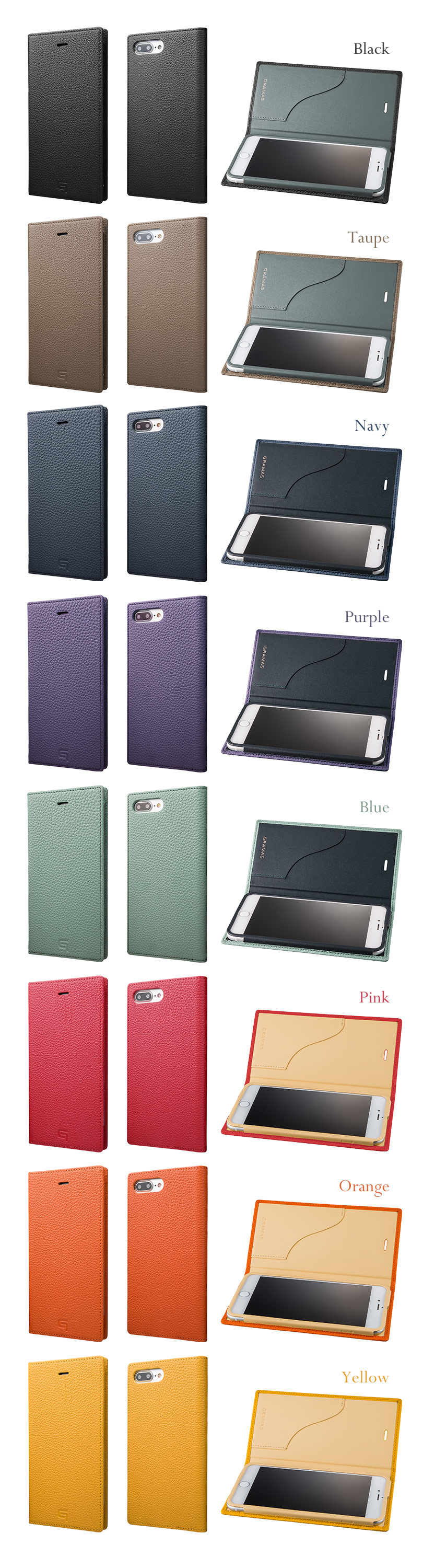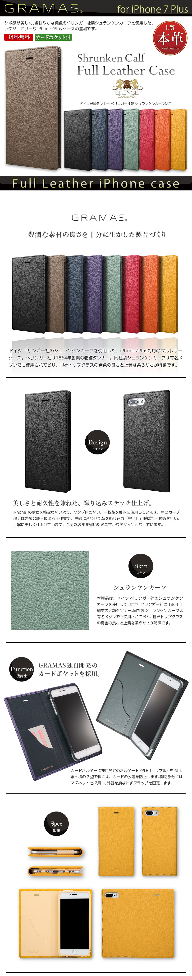 『GRAMAS グラマス Shrunken Calf Full Leather Case GLC656P』 iPhone8 Plus / iPhone7 Plus ケース 手帳型 本革 レザー