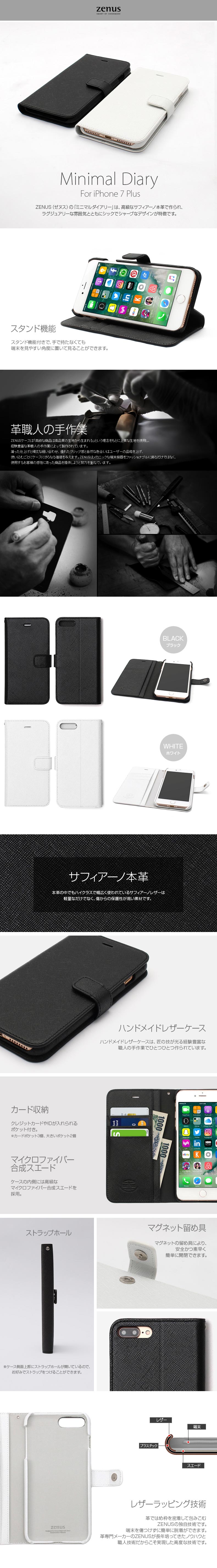 『ZENUS Minimal Diary』 iPhone8 Plus / iPhone7 Plus ケース 手帳型 本革 サフィアーノ レザー