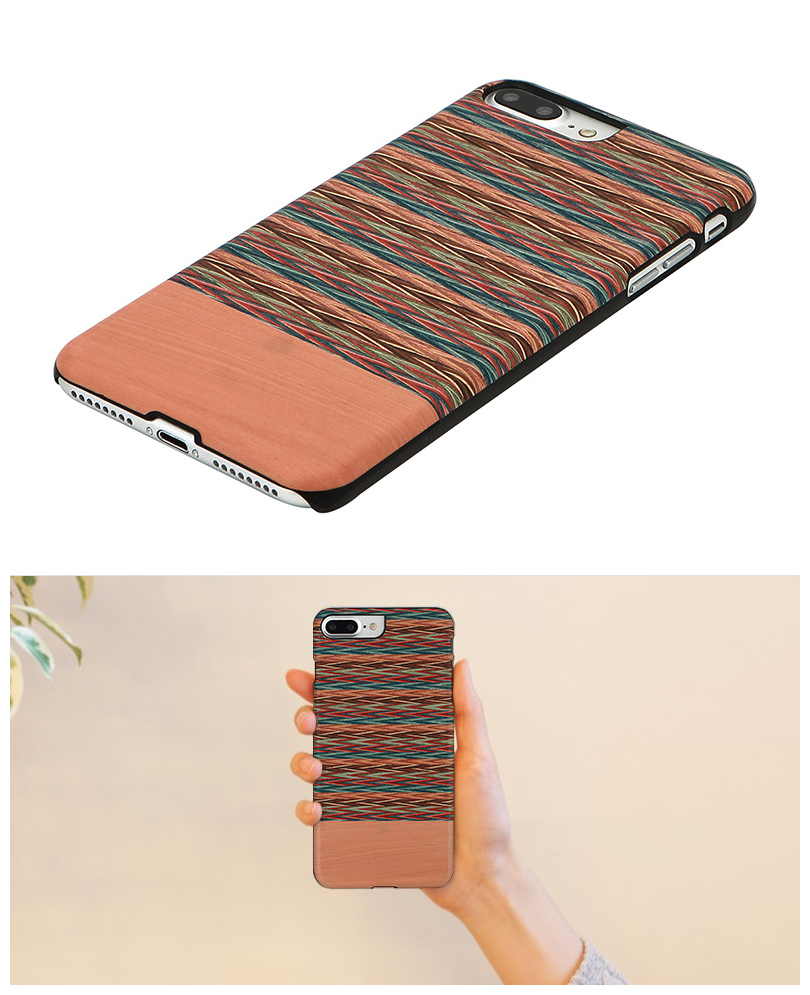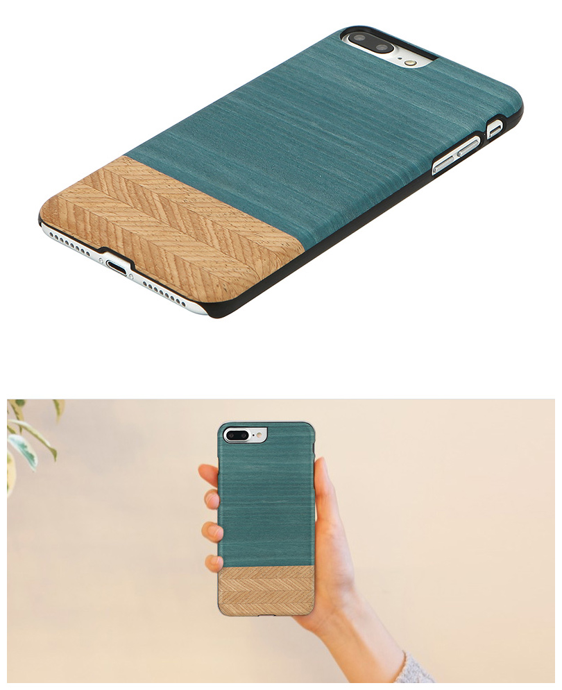 木柄のシールを貼っているのではなく、木をシールでケースに貼っているのでもありません。Man&Wood製品の木の部分は特殊技術により木を薄く切ってポリカーボネートの部分と完全に融合、一体化されています。木が曲がったり剥がれたりすることもありません。また耐水性も優れており水に濡れても品質に問題がありません。