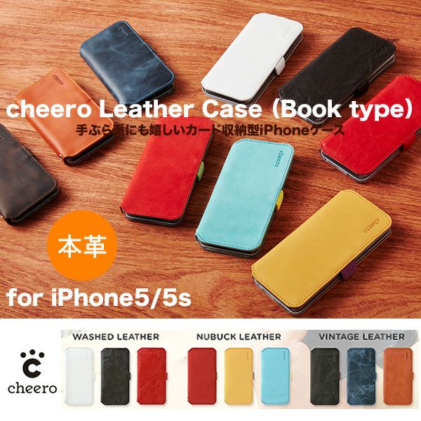 iPhone5s / iPhone5 用 本革 レザー ケース cheero チイロ Leather Case(Book type)の特長 ■手ぶら派にも嬉しいカード収納型iPhoneケース。 ■どんなファッションにも合わせやすいカラー展開で、人気のフリップタイプで9種類、登場です。 ■トルコで作られた高品質の本革製で、使ううちに手になじむ艶と風合いをお楽しみ頂けます。 ■薄いiPhoneを薄いままで。厚みを抑えたフリップタイプ。 ■3つのカードポケットで、カードもお札も収納できます。 ■ぶら下げ派に嬉しいストラップホールドつき。 ■WASHED LEATHER(ウォッシュドレザー 3色) 洗いが入ったようなしわ加工の革です。薄さ重視でしなやかな手触り。 ■VINTAGE LEATHER(ヴィンテージレザー 3色) ヴィインテージ感のあるむら加工。しっかりしたつくりです。 ■NUBUCK LEATHER(ヌバックレザー 3色) 起毛したスウェード調のしなやかで柔らかい肌触りをもつ加工で、カラフルな2トーンカラー。 ※ヌバックは汚れやすいので起毛系のクリーナー等でお手入れください。 iPhone 5s (アイフォン 5s)/ iPhone 5 (アイフォン 5)用 本革 レザーケース 手帳型 cheero チイロ Leather Case(Book type) の詳細