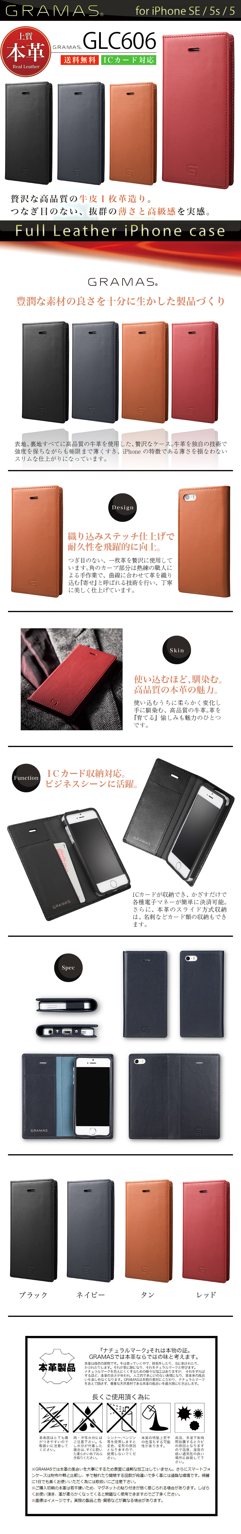 『GRAMAS Full Leather Case GLC606』 iPhone SE 手帳型ケース / iPhone5s ケース 手帳 本革 / iPhone5 手帳型