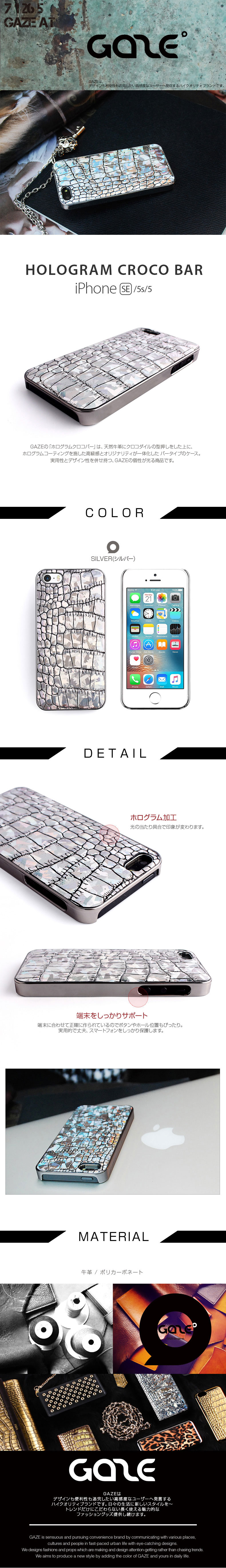 『GAZE Hologram Croco Bar』 iPhone SE ケース 本革 / iPhone5s / iPhone5 クロコ 型押し カバー