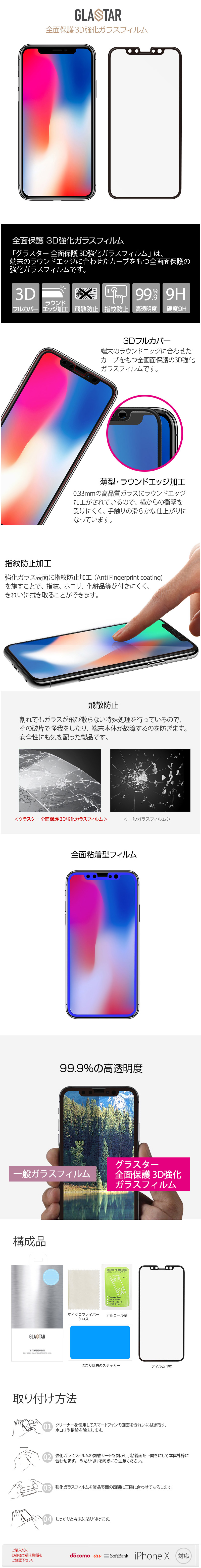 商品名 iPhone X グラスター 全面保護 3D強化ガラスフィルム for iPhone X case ( アイホンXケース アイホンテン )