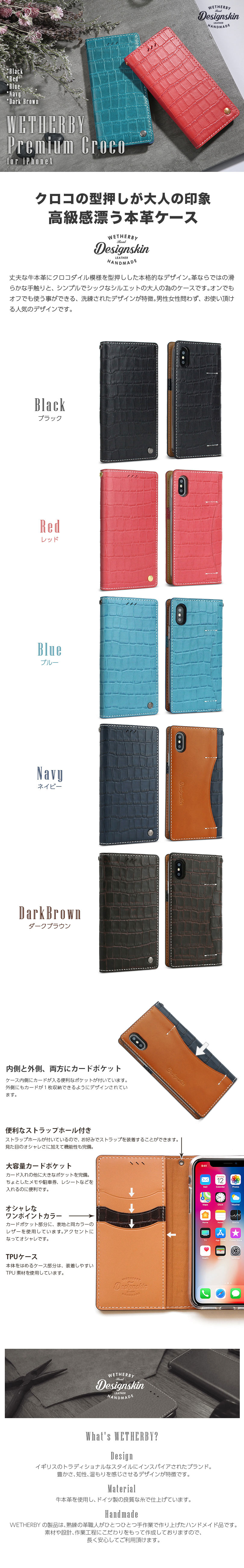 『WETHERBY PREMIUM CROCO』 iPhone XS ケース / iPhone X ケース 本革 クロコ 柄