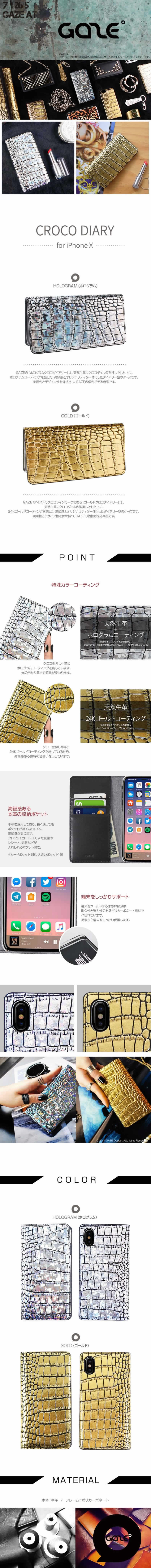 商品名 Gold Croco Diary / Hologram Croco Diary for iPhone Xs case ( アイホンXsケース アイホンテンエス )/ iPhone X case ( アイホンXケース アイホンテン )・ iPhone XR case ( アイホンXRケース )・ iPhone Xs Max case ( アイホンXsマックスケース アイホンテンエスマックス )