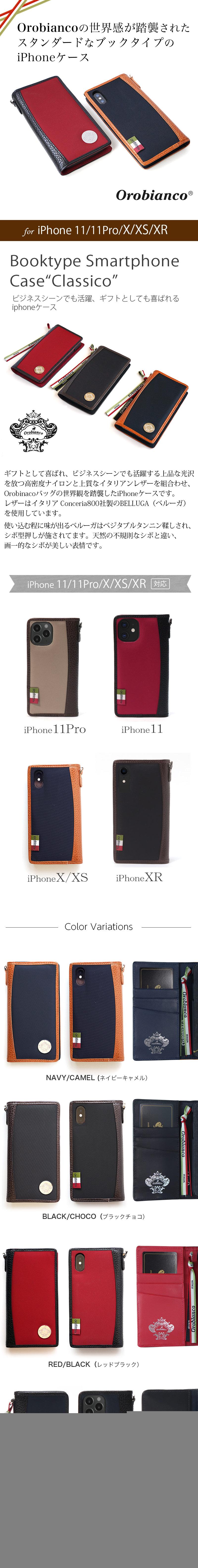 『Orobianco Booktype Smartphone Case“Classico”』 iPhone 11Pro ケース / iPhone 11 ケース / iPhone XS ケース / iPhone X / iPhone XR 本革 オロビアンコ