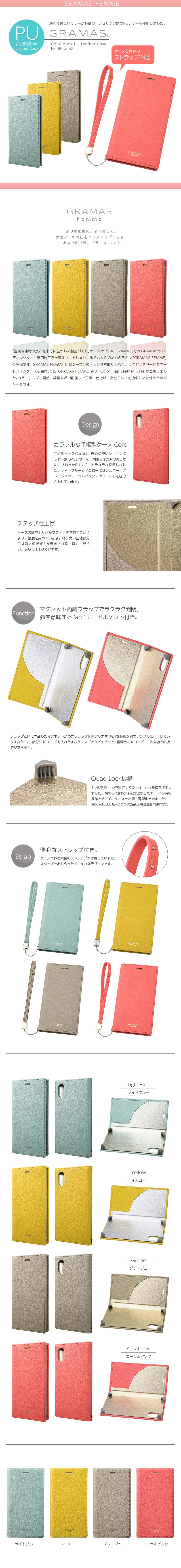 商品名 GRAMAS FEMME Colo Book PU Leather Case FLC60357 for iPhone XS case ( アイホンXSケース アイホンテンエス )/ iPhone X case ( アイホンXケース アイホンテン )