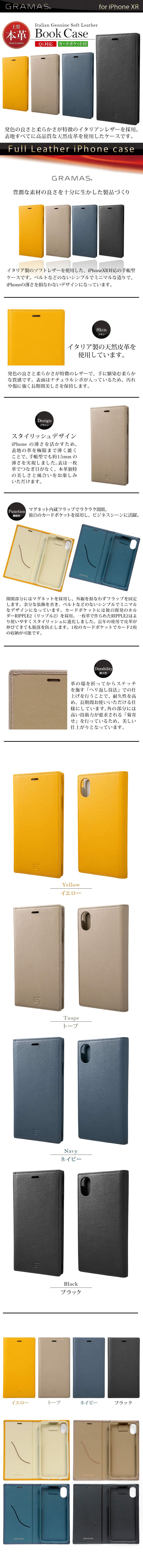 『GRAMAS Italian Genuine Soft Leather Book Case』 iPhone XR ケース 本革 イタリアンレザー