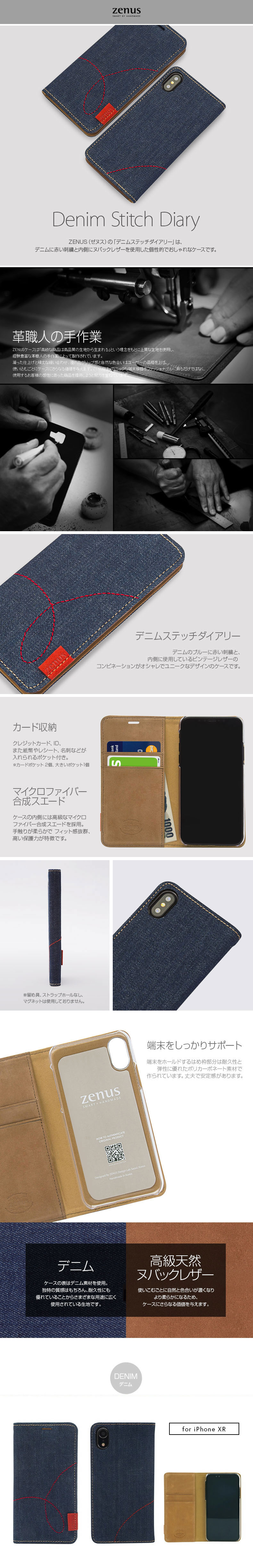 『Zenus Denim Stitch Diary』 デニム iPhone XR ケース 本革 ヌバックレザー