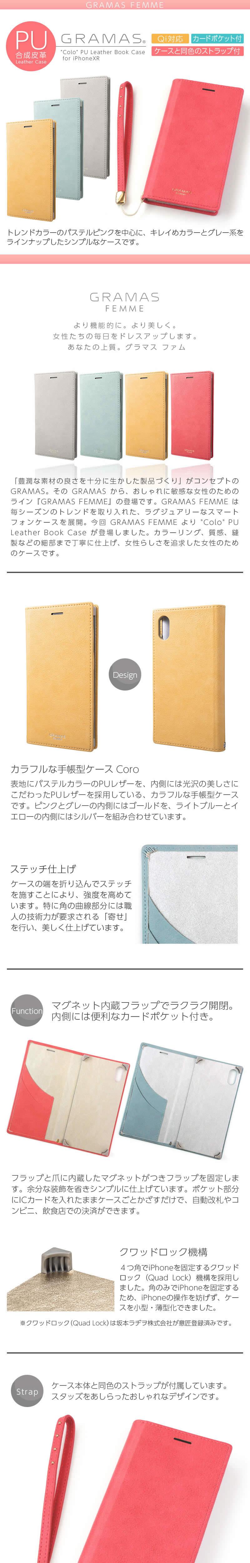 『GRAMAS FEMME Colo PU Leather Book Case』 iPhone XR ケース レザー