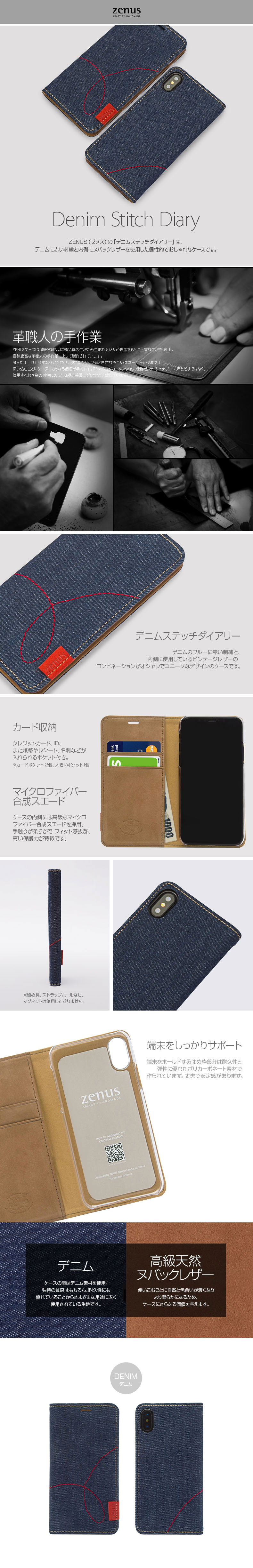 『Zenus Denim Stitch Diary』 iPhone XS Max ケース 本革 ヌバックレザー