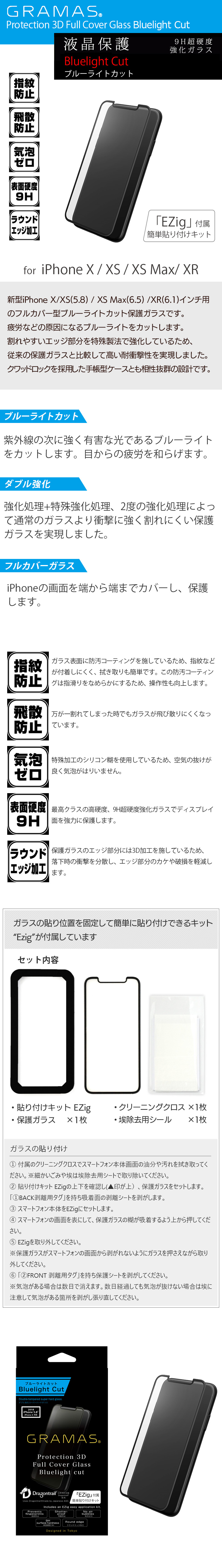 『GRAMAS Protection 3D Full Cover Glass Bluelight Cut』 iPhone XS ケース / iPhone X ケース/ iPhone XsMax / iPhone XR ケース